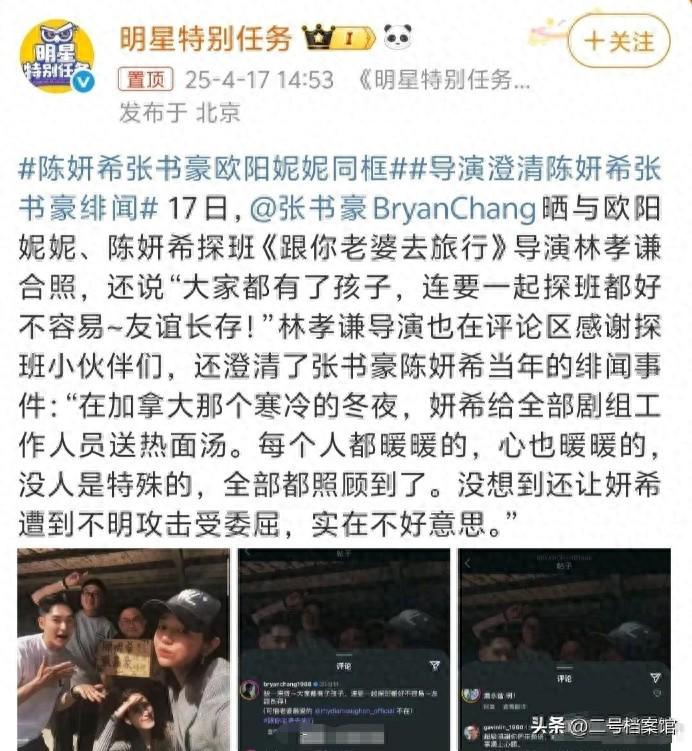 同时导演还在评论区留言,澄清了当年陈妍希和张书豪的绯闻,