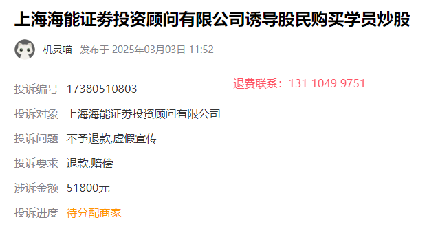 海能投顾交了服务费怎么退能退吗!可以能退!学员被诱导购服务费 依法成功退款流程