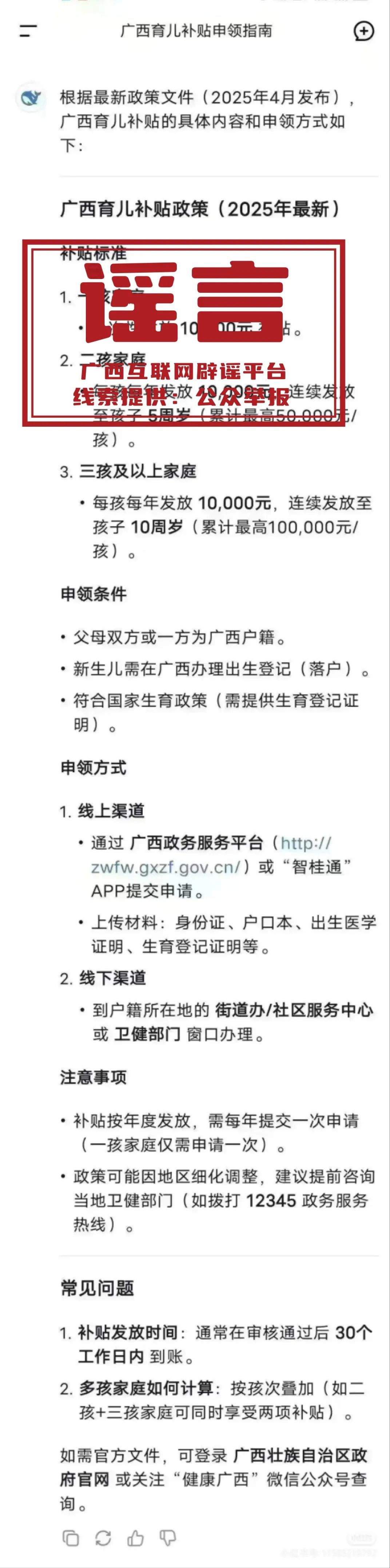 2025年广西育儿补贴政策发布?不实!