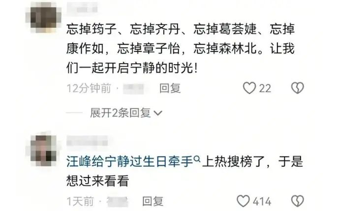 舆论的发酵让事件迅速升级,一些自媒体账号趁机蹭热度发布了诸如“汪峰宁静疑似新恋情曝光”之类标题耸动的文章,进一步推高了话题的讨论度,然而事实真相如何似乎已被淹没在猜测与调侃之中。