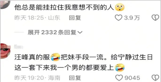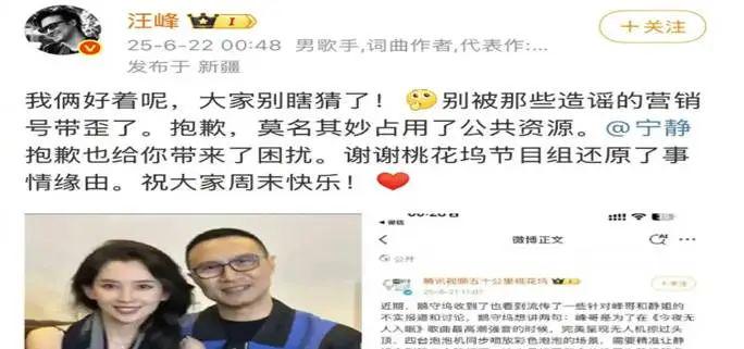 这场风波的另一个焦点是综艺节目的设计:《五十公里桃花坞》为了制造话题度,让汪峰为宁静策划生日惊喜,并刻意捕捉了两人的亲密互动,节目播出后这种“暧昧”氛围成功吸引了观众眼球,但也给当事人带来了不必要的困扰。