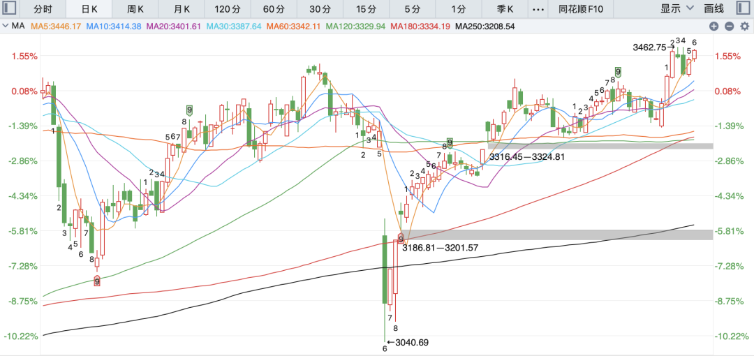 今天市场还是站在了3450点上方,所以接下来反弹应该暂未结束,后边还是有机会反弹到3480点上方。