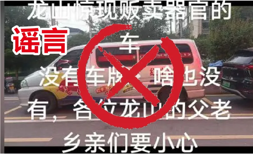 经调查,违法行为人杨某某交代其为了增加账号人气流量,随手拍下一张车辆图片,捏造事实配文“龙山县惊现贩卖器官的车,没有车牌,啥也没有,各位龙山的父老乡亲们要小心”发布。目前,杨某某因制作传播谣言被公安机关依法行政拘留。
